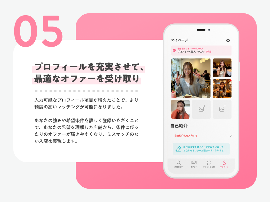 05. プロフィールを充実させて、最適なオファーを受け取り
